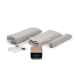 DENBA Healthのコアとなるのは、世界各国で認められた「単極電場技術」。マットを中心に半径1.5m以上、直径3m以上の空間にわたり電場を形成。その範囲に広がる極めて微細な電位が、空間内の水分子にやさしく働きかけることで、質の高いリラックス環境へと導きます。